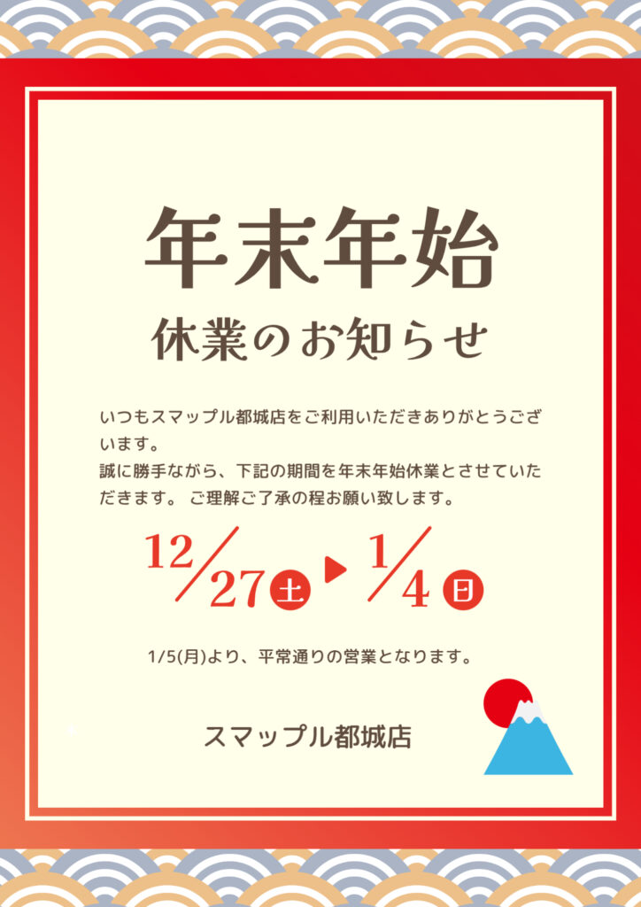 年始の営業は1/5(月)からとなっておりますのでお間違えの無いようよろしくお願いいたします。2026年1月6日(火)は定休日ではなく通常通り営業いたします。